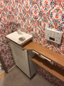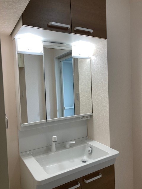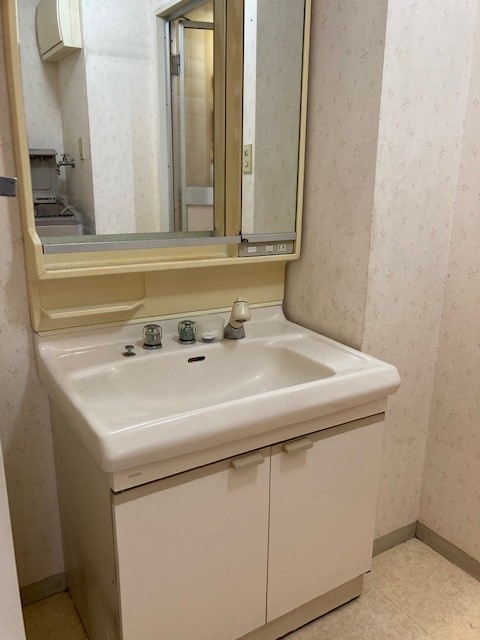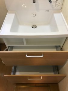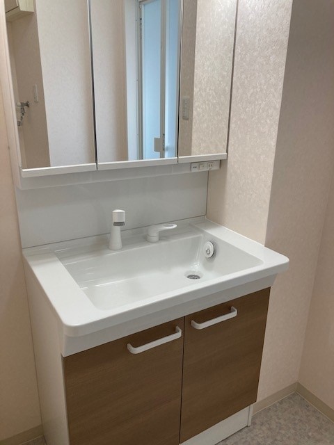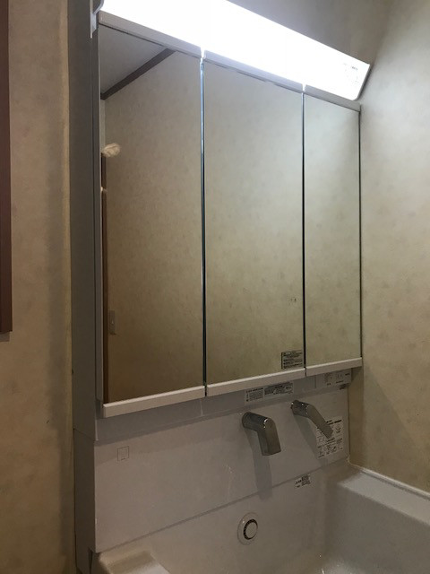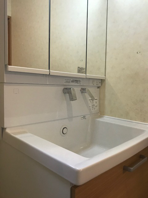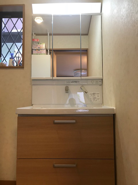 お客様の声 | 洗面台の奥行が少し短くなり、全体的に広くなりました。スイッチ部分や洗濯機の蛇口も交換し、安心です。 |