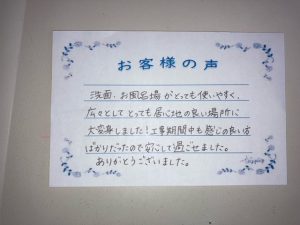 お客様の声 | 明るくなり掃除もしやすくなりました。追炊きする必要もなくなり省エネにもなりました。 |