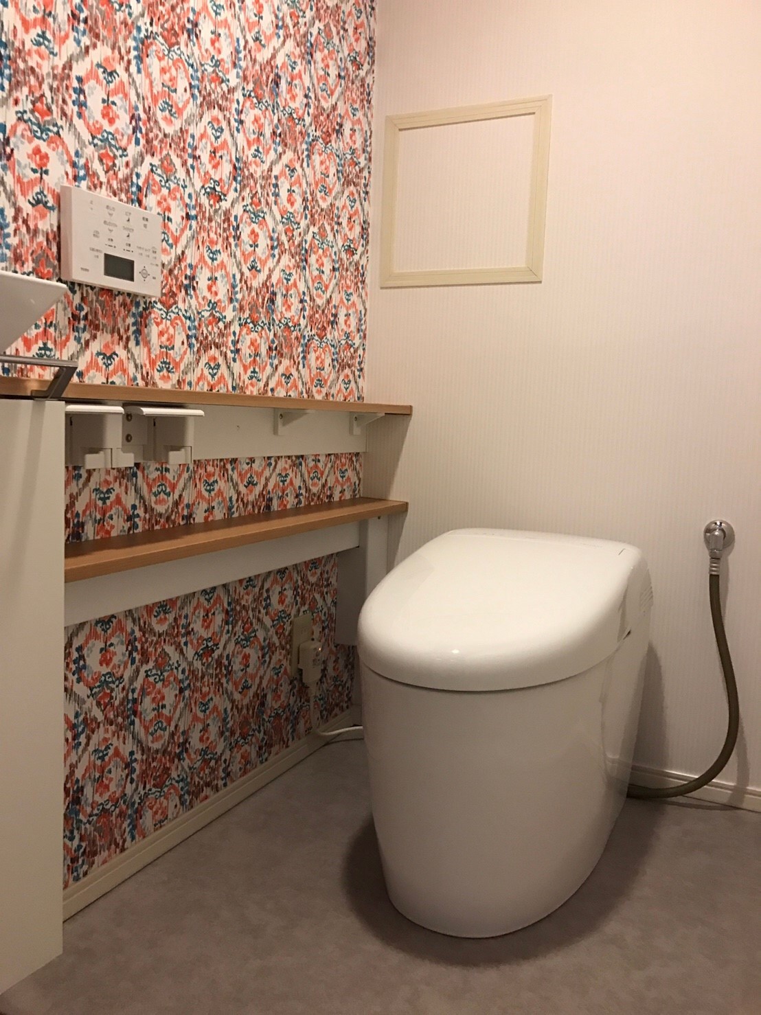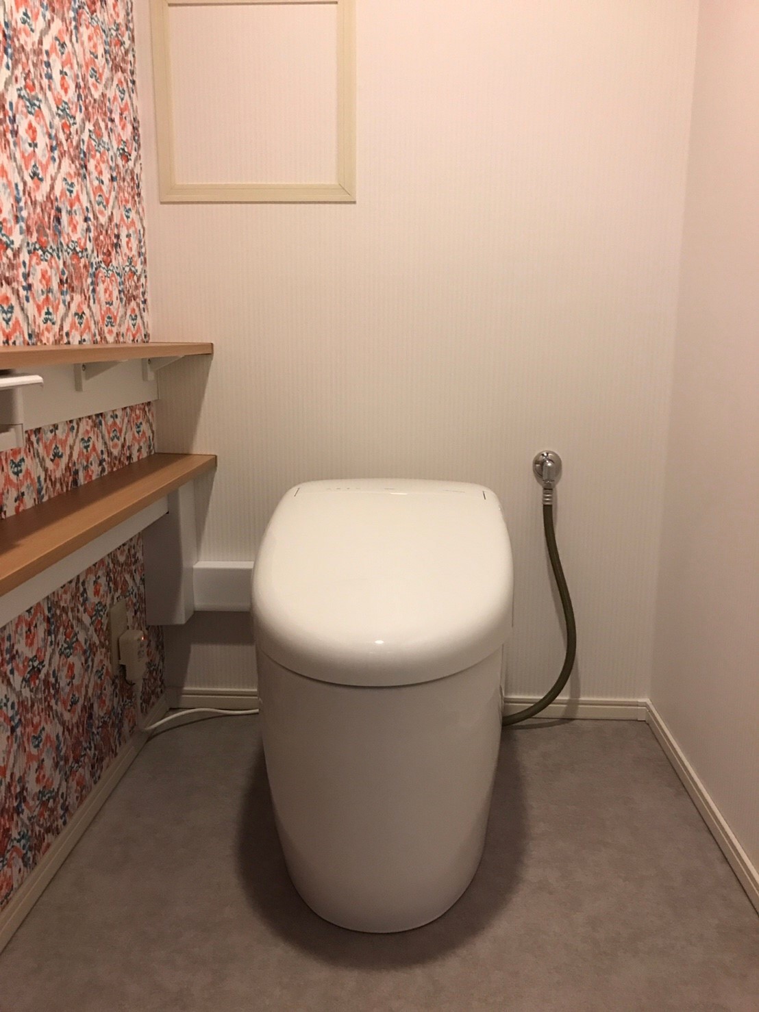 コンセプト | 清潔・節水を念頭にタンクレストイレとし、キャビネットとカウンターを設置するとともに壁紙・床材・天井をすべて貼り替えトイレスペースを一新する。 |